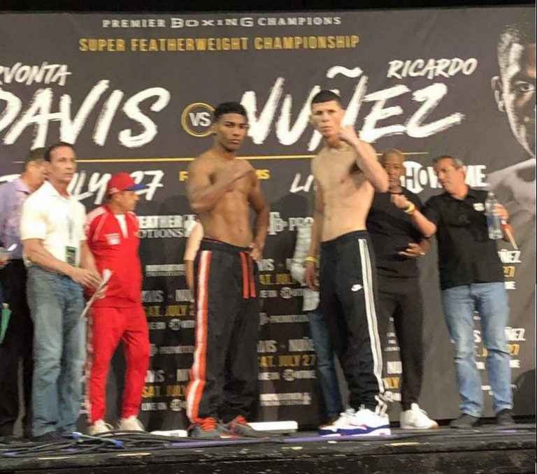 Los protagonistas del combate estelar de la velada no tuvieron problemas cuando el monarca de las 130 libras de la AMB, el estadounidense Gervonta Davis (21-0, 20 kos) pesó 129.2 libras, y el retador panameño Ricardo Núñez (21-2, 19 kos) marcó 128.7 libras.