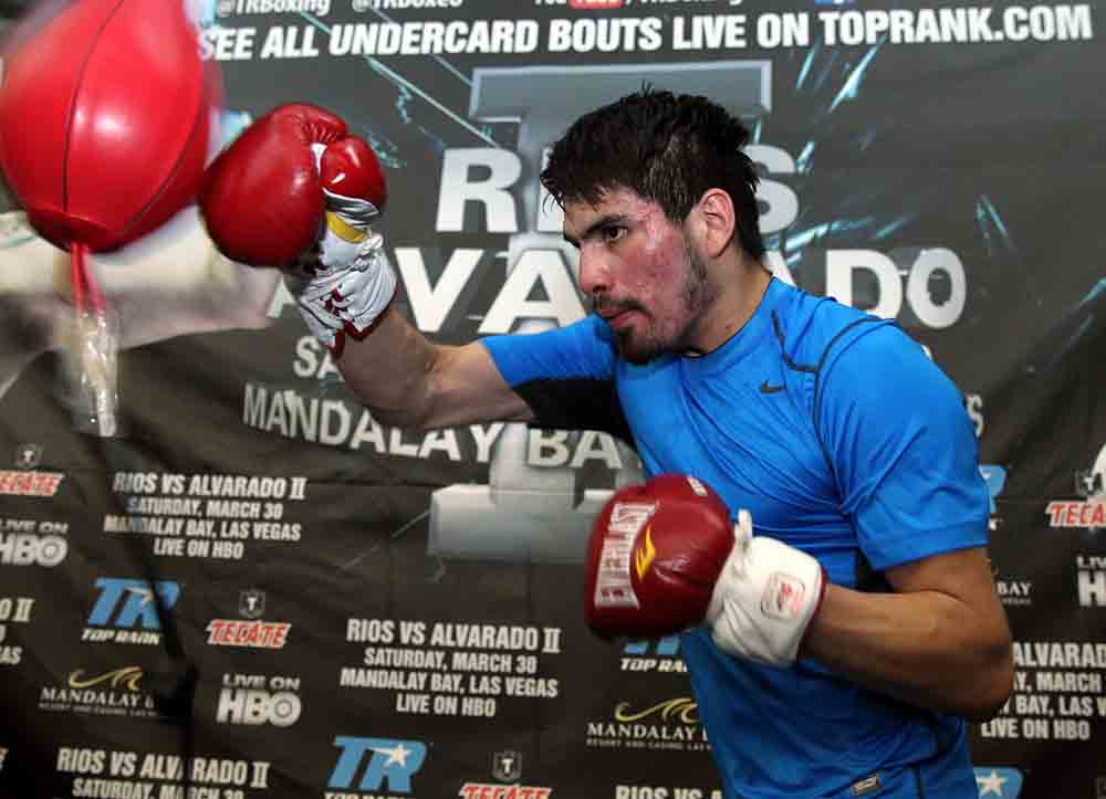 LAS VEGAS, NEV. (March 27, 2013) — Undefeated former world lightweight champion BRANDON “Bam Bam” RIOS (31-0, 22 KOs), of Oxnard, Calif., and top-rated contender “Mile High” MIKE ALVARADO (33-1, 23 KOs), of Denver, kicked off Fight Week with a Las Vegas Media Workout, Today! Wednesday, March 27, at theTop Rank Gym.