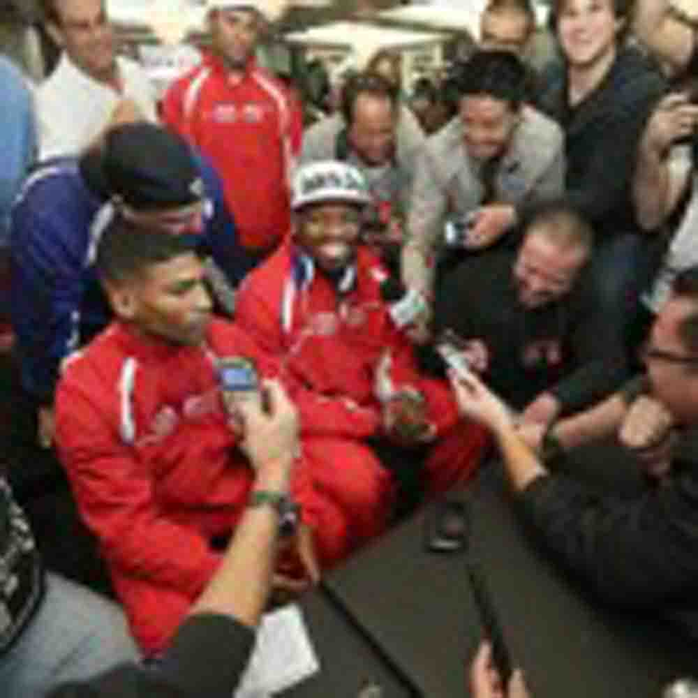 Photos of the undercard press conference of Pacquiao-Marquez at the MGM Grand Thursday. Vazquez defends his IBF World Lightweight title against Gesta, Hyland and Fortuna battle for the vacant WBA Interim Featherweight title, and Gamboa takes on Farenas for the WBA Interim Super Featherweight Championship.