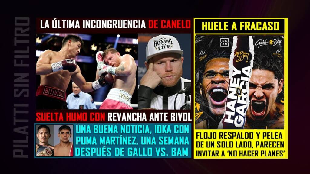 Bienvenidos a un nuevo Pilatti Boxing News, hoy con una reacción directa a la última incongruencia de Canelo Álvarez. Infla un globo absurdo mostrando interés ‘ahora’ por la revancha que evitó asumir cuando correspondía contra Dmitry Bivol. El Puma Martínez unificará contra Kazuto Ioka y será peleón. La pelea de Ryan García contra Devin Haney tiene todo para que no les vaya bien. Lo explico en este video.
