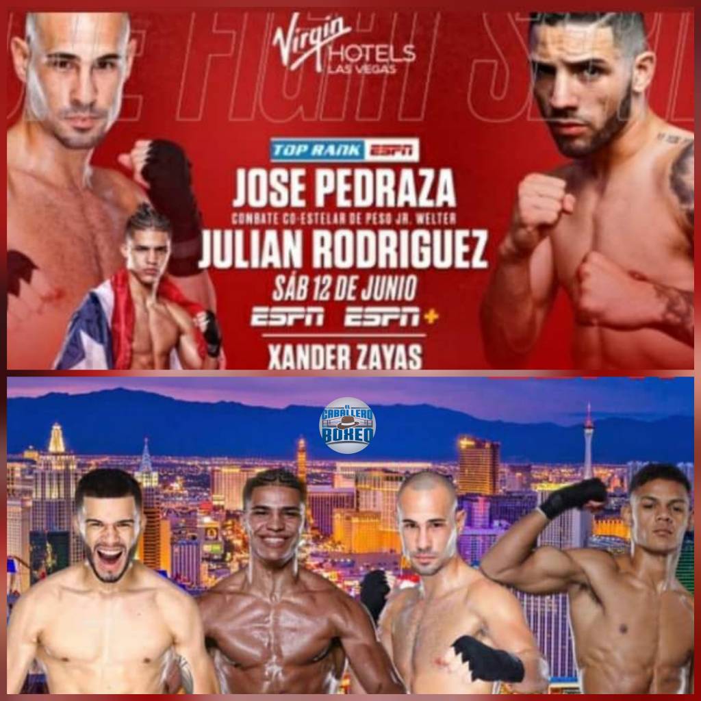 El próximo sábado una vez mas Puerto Rico tendrá buena representación en Las Vegas, Nevada. El campeón mundial en dos divisiones, 𝑱𝑶𝑺𝑬 “𝑺𝒏𝒊𝒑𝒆𝒓” 𝑷𝑬𝑫𝑹𝑨𝒁𝑨 (28-3, 13 KO’s), estará enfrentando al invicto 𝑱𝑼𝑳𝑰𝑨𝑵 “𝑯𝒂𝒎𝒎𝒆𝒓 𝑯𝒂𝒏𝒅𝒔” 𝑹𝑶𝑫𝑹𝑰𝑮𝑼𝑬𝒁 (21-0, 14 KO’s).
