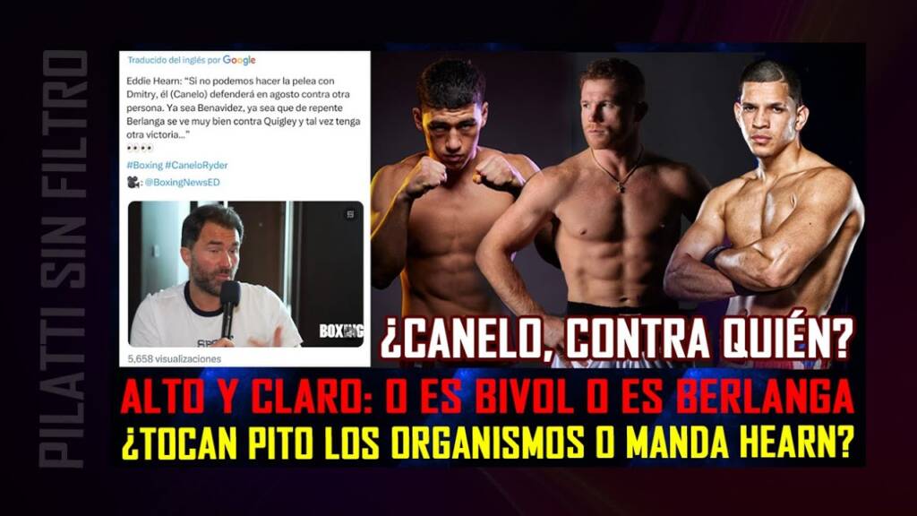 Ahora, dice que habla todos los días con el equipo de Dmitry Bivol “intentando convencerlos” de que acepten la revancha en 175 libras y no una pelea por todos los títulos de Canelo en 168. Si no se puede con Bivol, nombró al pasar a Benavidez y le dio mucho verbo a Edgar Berlanga como la alternativa a Bivol ¿Qué pasará entonces? Vea todas las respuestas en este nuevo video Sin Filtro y a la Yugular del tema elegido.