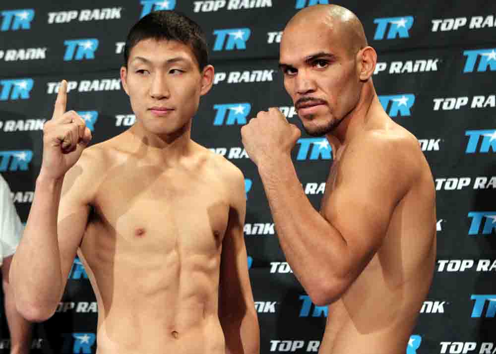 NABF Lightweight Champion Ray Beltran of Los Mochis, Mexico and Ji-Hoon Kim of Goyang City, Korea weighin (Beltran 134 lbs, Kim 135 lbs) for their upcoming main event , Thursday, Dec. 6 at the Mirage Hotel & Casino on ESPN in Las Vegas.