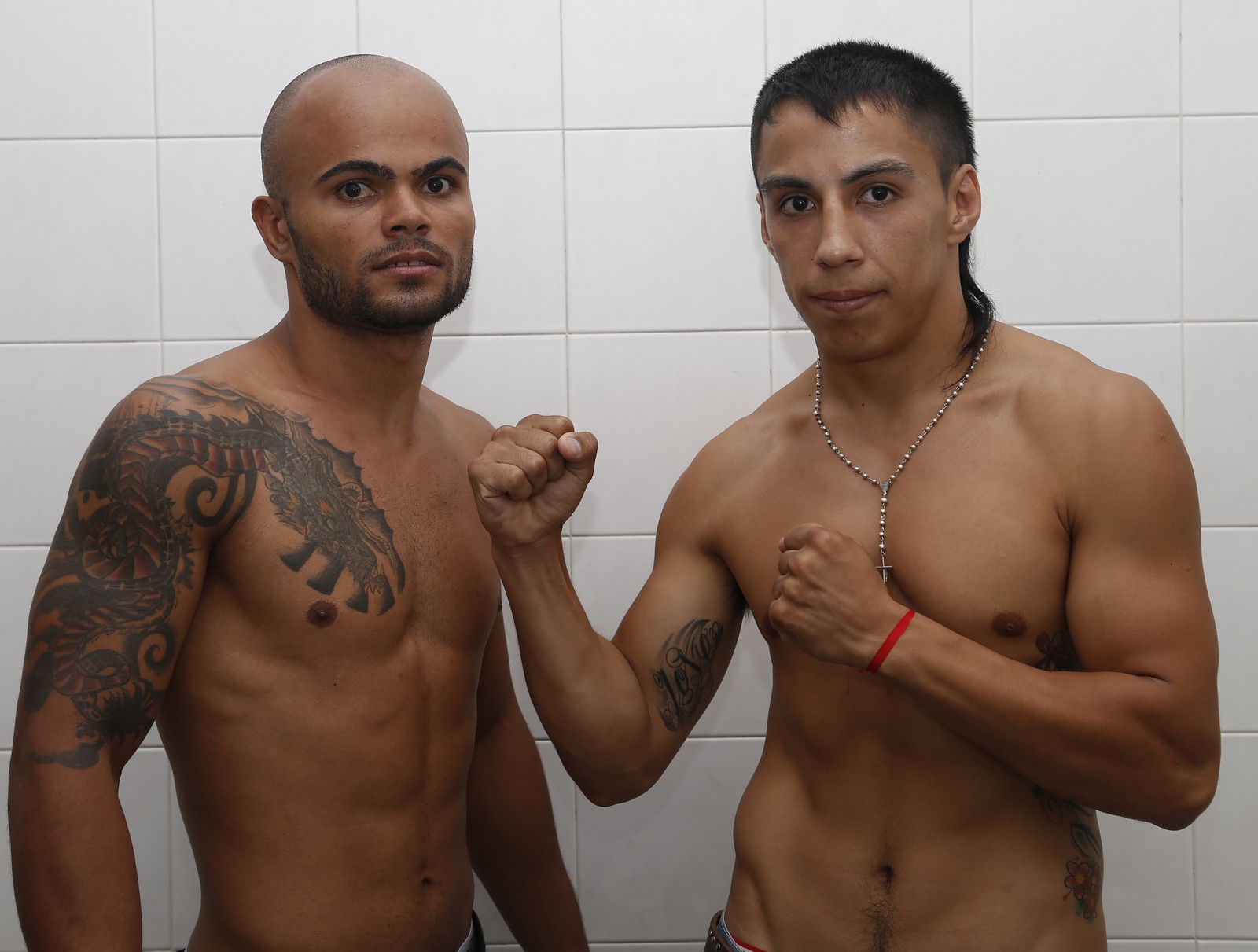 El primero en subir fue Reinoso, quien pesó 59,950 kg. -132.1 lbs.-. Segundos después, fue el turno de Santos Sampaio, quien registró 61,200 kg. -135 lbs.