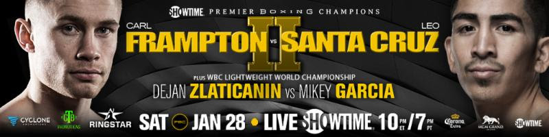 “Frampton-Santa Cruz II is truly the best that boxing has to offer, an immediate rematch of a leading Fight of the Year candidate between the two top-rated fighters in the division,” said Stephen Espinoza, Executive Vice President & General Manager, SHOWTIME Sports. “And Zlaticanin vs. Garcia is a ’50/50′ fight between two undefeated champions and a main event in its own right. The Jan. 28 telecast is the cornerstone of four upcoming SHOWTIME CHAMPIONSHIP BOXING presentations that feature the best matchups in boxing’s deepest divisions. Events like this one are proof that SHOWTIME delivers the strongest boxing line up of any network in the sport today.”