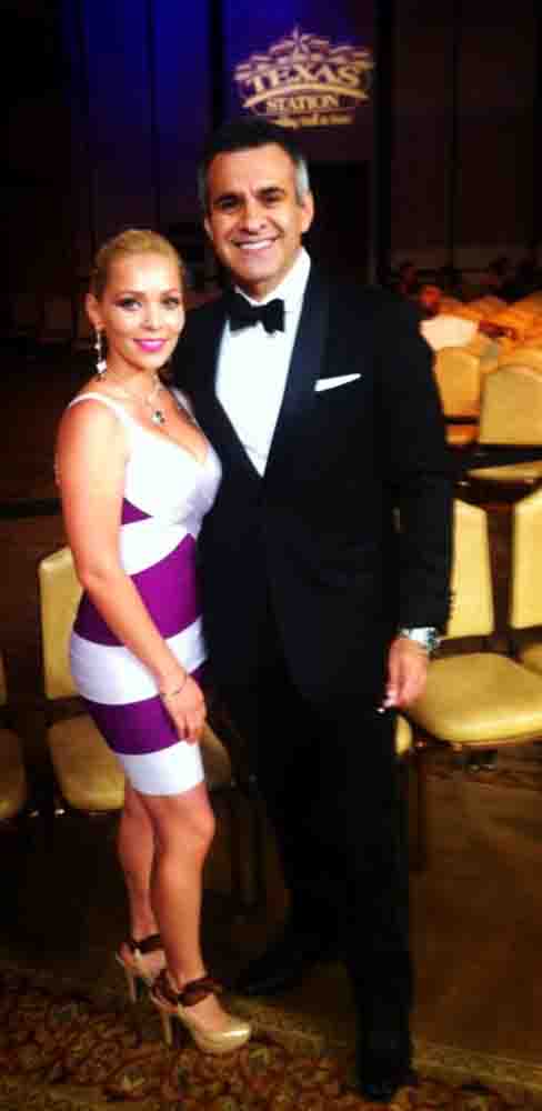 Los himnos tanto de México como el de Estados Unidos fueron interpretados por Acelyn Vega (en la foto con el anunciador Lupe Contreras) quien encantada de vida anduvo colectando contactos para mejorar su carrera artística y posando para las cámaras fotográficas por doquier.