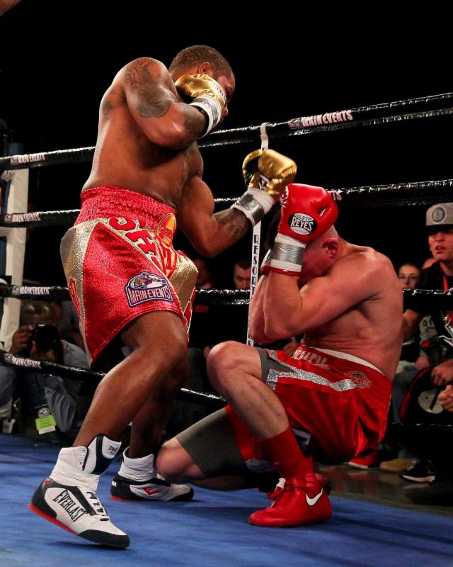 Stevens first dropped Majewski with a booming right. When Majewski got up, Stevens trapped him on the ropes and put him down again with a flurry of punches. Finally a hard left hook knocked Majewski down for a third time and referee Lindsey Page waved the bout to an end.