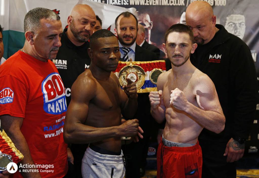 El púgil cubano paró la báscula en 121.75 libras y el púgil británico marcó 121.5 libras, luego de cumplir con el peso ambos sostuvieron un tenso “cara a cara” para las fotos de prensa del cual tuvieron que ser separados por sus equipos de trabajo.