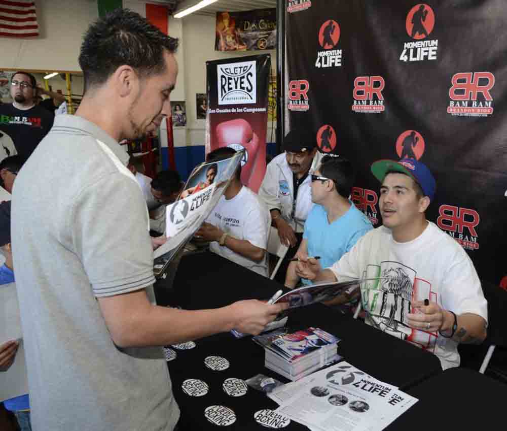 Southgate, Calif. — Former Lightweight champion Brandon “Bam Bam” Rios signs autographs for the hundreds of fans that showed up during his exclusive “meet and greet” Sunday afternoon. Rios is in preparation for his upcoming exciting rematch against Mike Alvarado of their 2012 Fight of the Year-nominated fight.
