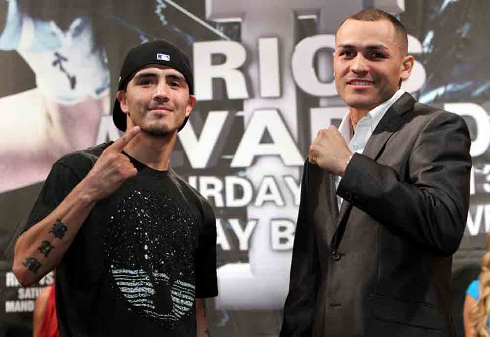 LAS VEGAS, Nevada – Por primera vez desde que bajaron del ring el pasado mes de octubre en Los Angeles, el ex campeon invicto de peso ligero Brandon Rios y el clasificado mundial Mike Alvarado se volvieron a ver las caras hoy en Las Vegas dos dias previo a su esperado segundo combate.