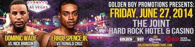 In the ShoBox main event, Errol “The Truth” Spence, Jr. (12-0, 10 KOs), of Dallas, Texas, will face young veteran Ronald Cruz (20-3, 15 KOs), of Bethlehem, Pa., in a 10-round welterweight bout. In the co-feature,Dominic “Lights Out” Wade (15-0, 11 KOs), of Washington, D.C., takes on New York’s Nick “The Machine Gun” Brinson (16-1-2, 6 KOs) in a 10-round middleweight clash.