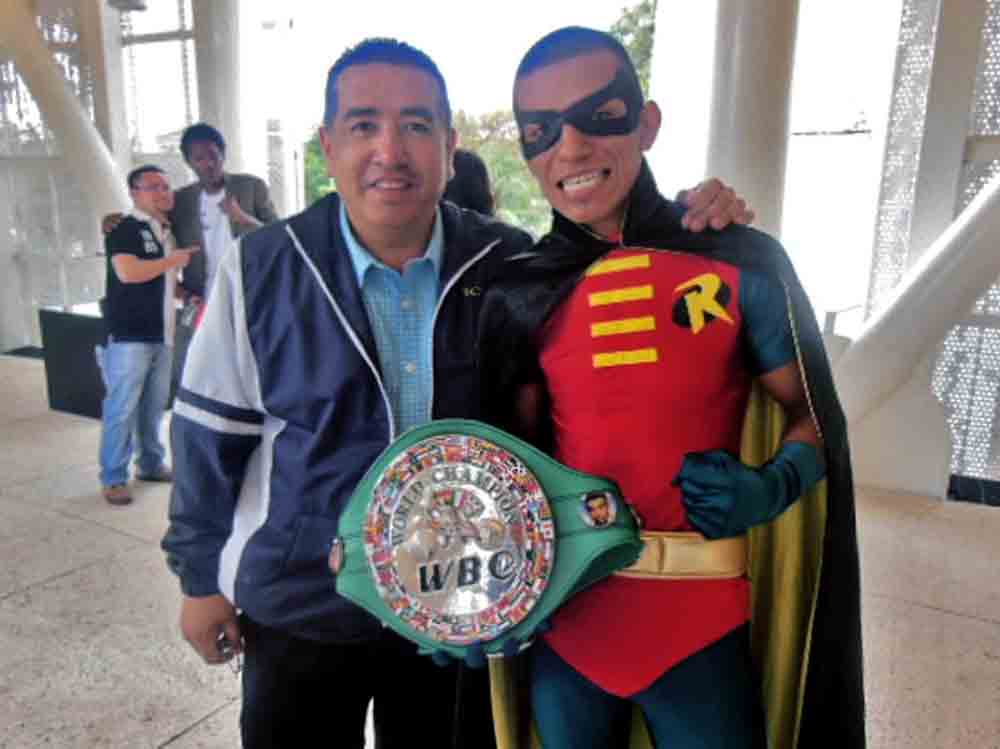 El celayense Castellanos fue la sensación en la ceremonia de pesaje que se efectuó sobre el puente que cruza la Laguna de las Ilusiones. Con su vestimenta de Robin, Castellanos fue el centro de atención de reporteros y aficionados, de cámaras y flashes que buscaban tener la primera declaración del superhéroe de los comics. No faltó, claro, quién le preguntara por Batman o, en este caso, por la Mujer Maravilla (Zulina Muñoz, actual campeona mundial supermosca del Consejo Mundial de Boxeo), con quien compartió créditos en 2012.
