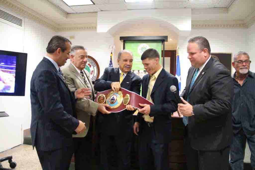 Martínez (29-2-2, 17 KOs), que estuvo acompañado de su esposa e hija y su entrenador Raúl “Papo” Torres, obtuvo su nueva faja de manos del presidente de la OMB, Francisco “Paco” Valcárcel en una actividad que se realizó en el Salón de Audiencias María Luisa Arcelay en el Capitolio de Puerto Rico y de la cual formó parte también el Representante Ángel “Gary” Rodríguez.