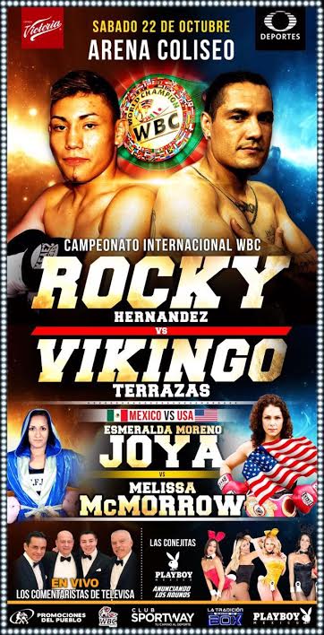 Una gran pelea entre mexicanos que combinan juventud y experiencia, es la que sostendrán el próximo 22 de octubre en la Arena Coliseo, el sólido prospecto capitalino, Eduardo ‘Rocky’ Hernández’, y el ex campeón mundial, Víctor ‘Vikingo’ Terrazas, quienes chocarán en el pleito estelar de la cartelera de talla internacional que se transmitirá por la señal de los Sábados de Box de Televisa Deportes, con el apoyo de Cerveza Victoria y Playboy México.