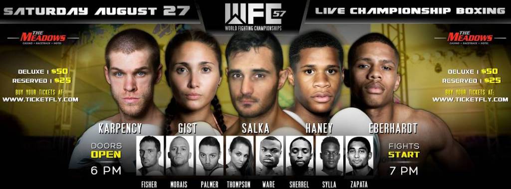 PITTSBURGH, PENNSYLVANIA – August 18, 2016 – World Fighting Championships returns to Meadows Racetrack & Casino on Saturday, August 27, with a nine-bout card headlined by “Lightning” Rod Salka (22-4, 4KO) in a eight-round banger versus Arizona’s Wilberth Lopez (15-5, 10KO).