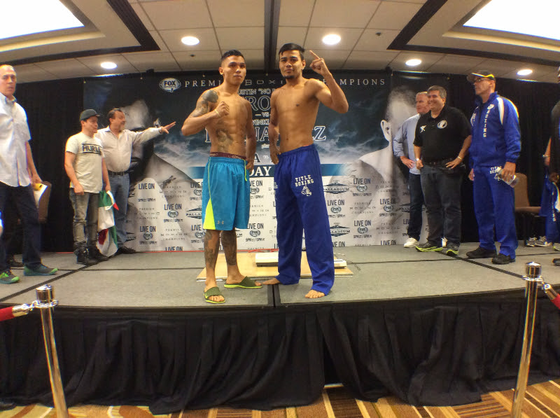 Hollywood, California – Durante la tarde de ayer lunes 7 de septiembre en el hotel Crown Plaza, se llevó a cabo el pesaje de la cartelera “Toe-to-Toe Tuesdays” Mano a Mano los Martes por Fox Sports 1. Con una muy buena cartelera promete proporcionar explosividad y acción sólida.
