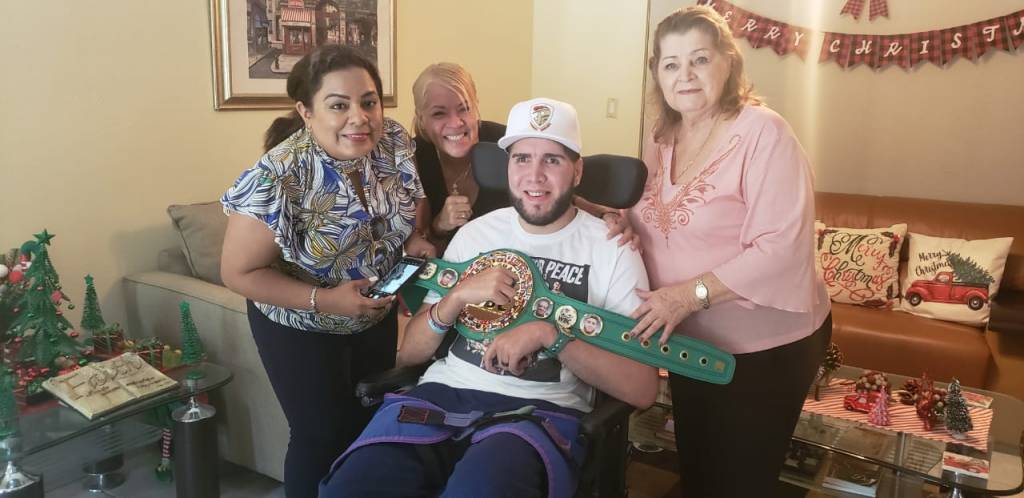 La valentía de Prichard y su amor por la vida, ha conmovido muchos corazones y ha inspirado a otros tantos, hecho que le valió ser nombrado campeón honorario del WBC, distinción que, por supuesto conlleva ser poseedor de un cinturón verde y oro, ese con el que soñó desde que se inició en el mundo de los guantes. Una entrega más que emotiva, pues las encargadas de llevar y entregar el emblemático cinturón fueron, la esposa de nuestro querido miembro del WBC Bismark Morales y Ruth Rodriguez, esposa del excampeón Rosendo Alvarez quienes con todo el amor y admiración colocaron la faja en el pecho de Prichard como embajadoras de WBC Cares.