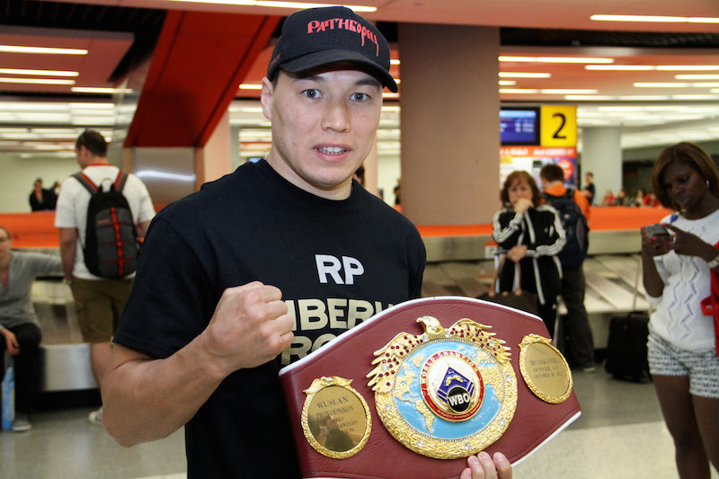 BROOKLYN (June 2, 2014) — World Boxing Organization (WBO) junior welterweight champion the “Siberian Rocky” RUSLAN PROVODNIKOV arrives at John F. Kennedy International Airport on Sunday. The Freddie Roach-trained Ruslan is scheduled to defend his title against undefeated Long Island scholar-brawler CHRIS ALGIERI on June 14, 2014 at the Barclays Center in Brooklyn, NY. It will be televised live on HBO Boxing After Dark®.