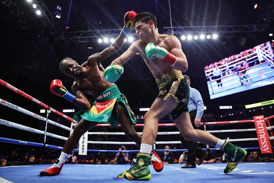 Ryan García (quien volvió luego de 15 meses de inactividad) estaba muy confiado de que vencería a su rival (el africano Emmanuel Tagoe). Incluso se dio el lujo de reírse de él al extremo de decir que prefería jugar “Mario Kart” que ni en eso nadie podía vencerlo. Tagoe se esforzaba en hablar en inglés para que pudieran entenderlo diciendo que sube al ring seguro de que podía ganarle.
