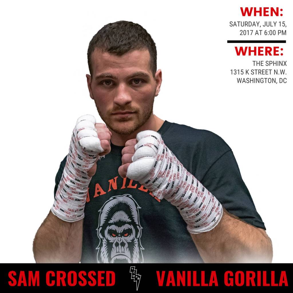 WASHINGTON, D.C. (July 13, 2017) — Cruiserweight sensation Sam “The Vanilla Gorilla” Crossed (5-0, 3 KOs) of Greenbelt, Maryland, will be stepping back into the squared circle on July 15, at the Sphinx on K in the co-main event. This will be Crossed’s first fight after suffering a broken bone in his right hand in his last bout on Oct.19, 2016, in Charlotte, in which he scored a second round technical knockout of Michael Tillery (0-2).