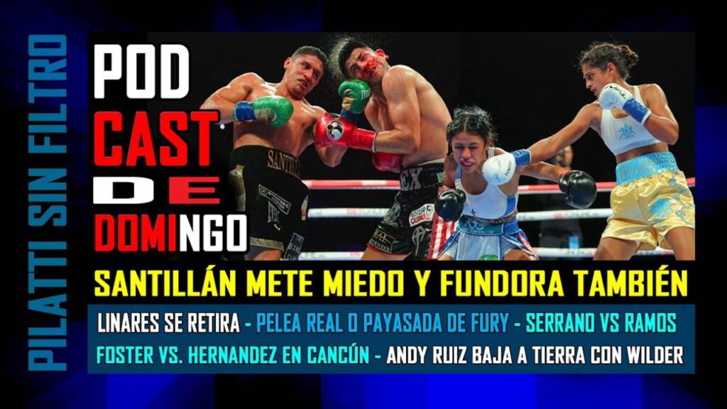 Bienvenidos al podcast dominical con los principales temas en boxeo al final y comienzo de semana. Nuestro punto de vista a las impresionantes victorias de Giovani Santillán y Gabriela Fundora, junto al adiós de Linares, la pelea histórica, por su cambio de reglas, entre Amanda Serrano y Daniela Ramos, así como el lugar donde debemos colocar la expectativa previa a la próxima pelea de Tyson Fury, la gran oportunidad de título para el Rocky Hernández el sábado en Cancún y la novedad absoluta de Andy Ruiz, bajó a tierra de manera urgente y cambió su narrativa, resultado: su pelea eliminatoria contra Deontay Wilder sigue viva.