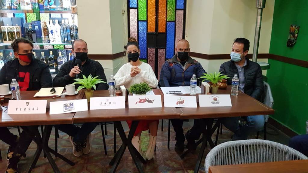 En conferencia de prensa realizada en el restaurante Jade, en el Centro de San Juan de los Lagos, se dieron cita el promotor Manuel Pérez; Mario De Anda, secretario particular del Presidente Municipal; Diana Laura De Anda, Regidora de Turismo y Cultura del Municipio; y Felipe González, Director del Deporte, quienes dieron detalles del evento boxístico.