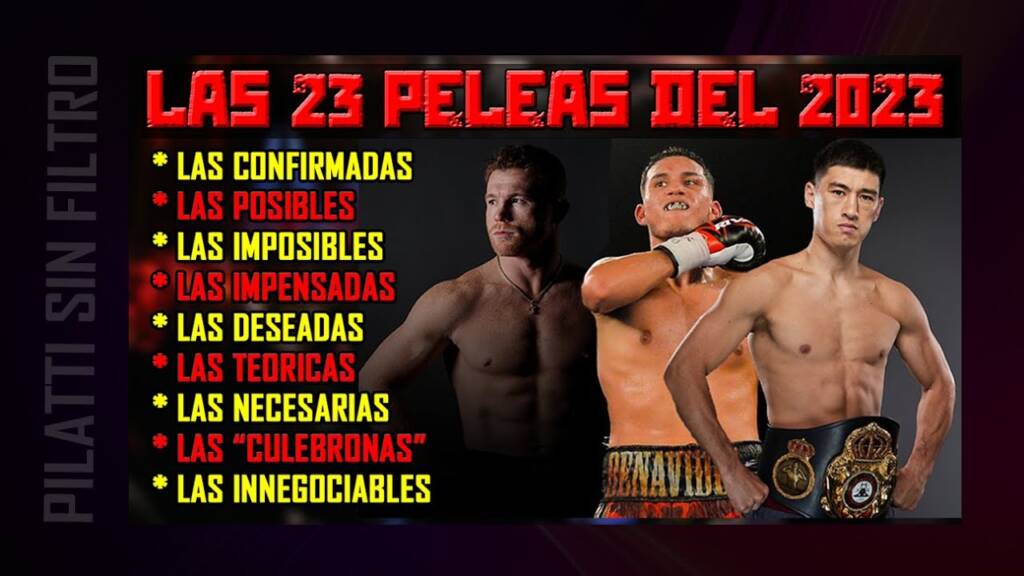 Entre posibles e imposibles, hemos escogido 23 peleas para el 2023. Véalas, descarte la que no le agrade, escoja la que encuentre atractiva y agregue sus propias peleas. Este video aguanta todo, hasta – como lo verán al final – una pelea donde por ahora al personaje de la foto, le estamos buscando un rival.