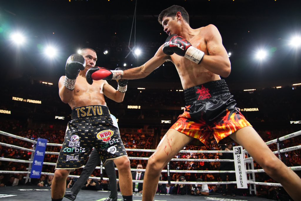 Después de que Keith Thurman se retirara debido a una lesión, el larguirucho y torpe Sebastian Fundora intervino para tratar de quitarle el título de la OMB a Tszyu y ganar el cinturón vacante del CMB . Tanto Tszyu como Fundora ayudaron a librar una batalla de estilo antiguo.