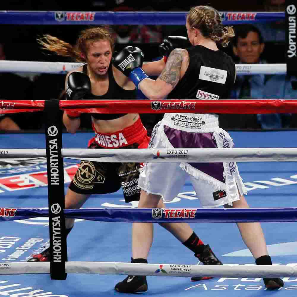 She continued, “Thank you Roy Englebrecht, Tom Loeffler, K2 Promotions, GGG Promotions, Artie Pellulo, and Banner Promotions for allowing me to represent women’s boxing on a major HBO Boxing card. Thank you Oscar A. Sanchez, PS Realty, and Security National Mortgage Co. for being my awesome, supportive sponsors. Thanks to Eddie Aguilera, Tattoo, Savages Clothing, Elie Seckbach, and JC Casarez for being an integral part of Team Estrada’s success this week. Thanks to all the fans and media that continue to support me. You inspire me and help push me forward. Thanks to Jeandra LeBeauf and Esther Lin for always supporting women’s boxing and for all the great fight week pictures. You both rock.”