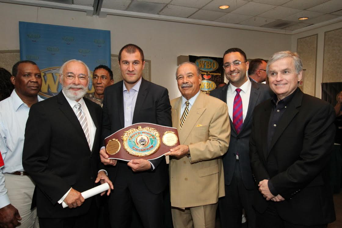 San Juan, PUERTO RICO – Durante la mañana de hoy, en una ceremonia celebrada en el Restaurante Zipperle de San Juan, Puerto Rico, la Organización Mundial de Boxeo (OMB) y su Presidente Francisco ‘Paco’ Valcárcel homenajearon al campeón ruso, Sergey Kovalev, entregándole el majestuoso cetro de Súper Campeón Semipesado de la OMB.