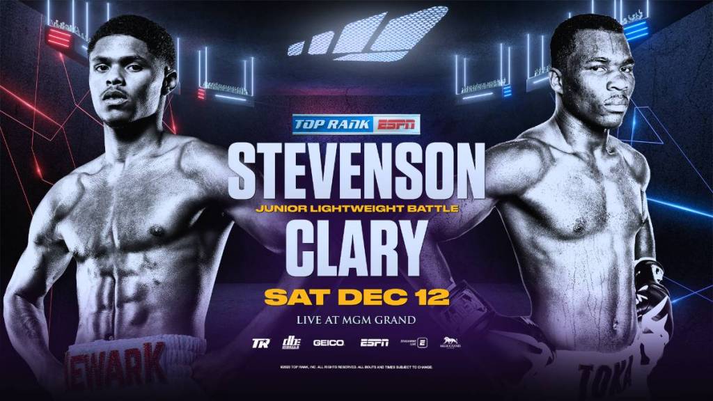 Uno de los líderes del ascendente movimiento juvenil del boxeo, Shakur Stevenson, cerrará el 2020 a lo grande. Stevenson, el invicto ex campeón mundial peso pluma de Newark, Nueva Jersey, peleará contra Toka Kahn Clary en un evento estelar de peso junior ligero a 10 asaltos el sábado 12 de diciembre desde el MGM Grand Hotel & Casino.