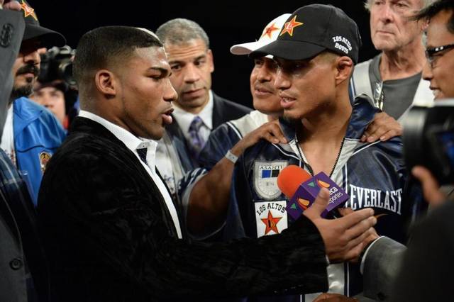 MIKEY GARCIA y Yuriorkis Gamboa (i) cruzaron palabras el 25 de enero del 2014 en Nueva York en busca de un choque que nunca tuvo lugar.