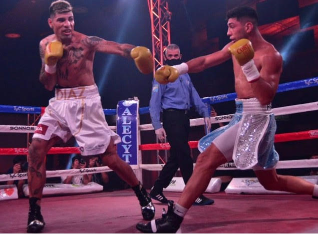 Respecto al pleito por la corona nacional, la pelea estaba pareja con ligera prevalencia del campeón, quien, en el tercer asalto y en momento de tener sujetada la cabeza de Díaz con su brazo izquierdo, recibió del retador un flagrante mordisco en el antebrazo.