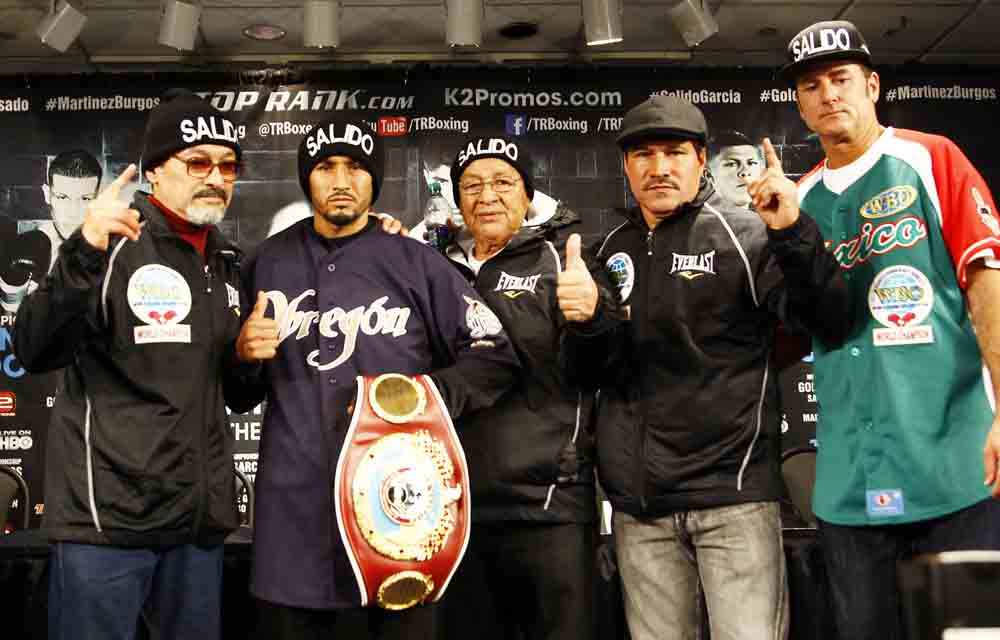 Peleando como en casa, el boricua “Rocky” Martínez estrenará el campeonato que conquistó en septiembre de 2012 al vencer a otro mexicano, Miguel “Barreterito” Beltrán, mientras que Burgos enfrenta su segunda oportunidad de ser campeón del mundo, luego de que en septiembre de 2010 fue a Japón a disputarle el cetro Pluma CMB a Hozumi Hasegawa, ante quien cayó por decisión.