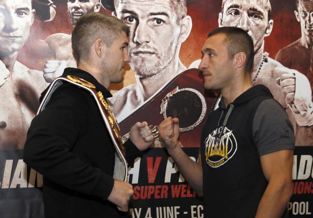 Smith-and-Radosevic-meet-face-to-face-at-final-press-conferenceLiverpool’s WBO Super-Welterweight Champion Liam Smith came face-to-face with Montenegro’s Predrag Radosevic at today’s press conference at the Hilton Hotel in Liverpool. Undefeated Smith, 22-0-1 12 KO’s, makes the second defence of his world title against WBO European Champion Radosevic this Saturday at Liverpool’s Echo Arena, live and exclusive on BoxNation.
