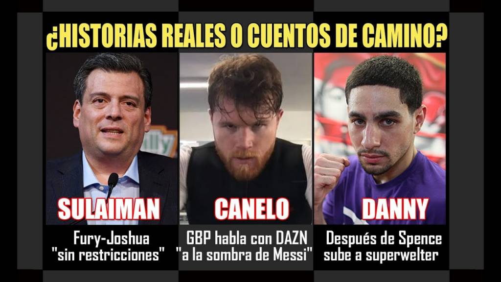 En este video analizamos tres historias reales que, tal vez, no sean más que simples ‘cuentos de camino’. La primera es sobre Saúl ‘Canelo’ Álvarez y la última novedad sobre las gestiones entre DAZN y GBP para que regrese en noviembre ¿Adivinen contra quién? Si pensó en Callum Smith y Billy Joe Saunders dio en blanco. Sobre ellos se habla de nuevo en un cambio radical de escenario y en este caso con hasta tres increíbles analogías con la situación actual de Lionel Messi en su relación con Barcelona. Se ‘la cuento’ en el video.