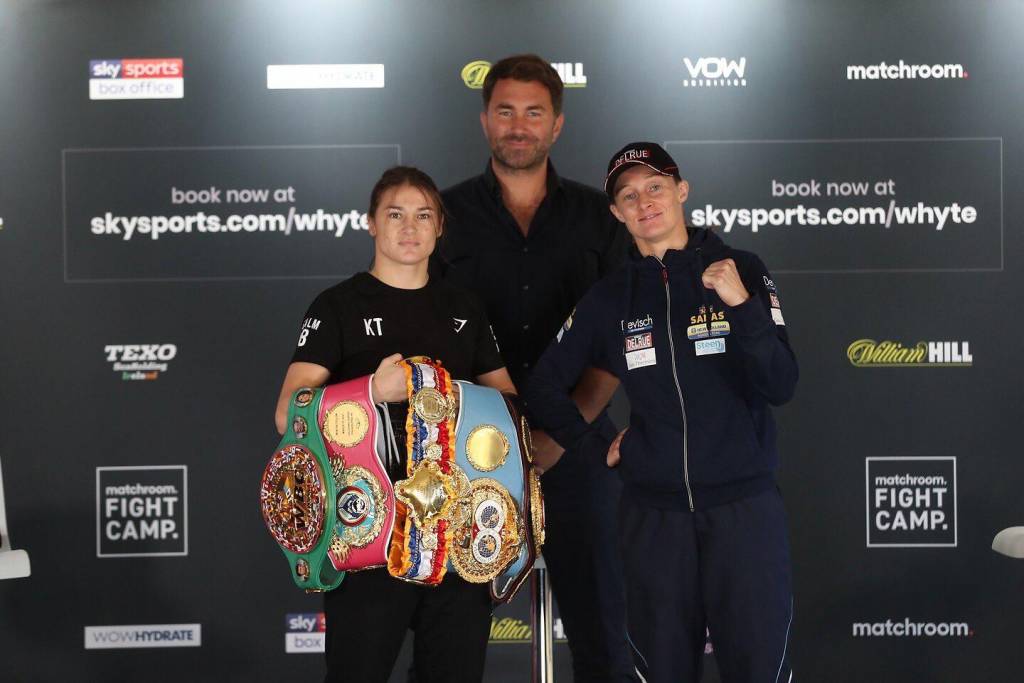 Katie Taylor y Delfine Persoon estuvieron frente a frente en la última rueda de prensa antes de su combate de este sábado por el título ligero de la Asociación Mundial de Boxeo (AMB) y todos los títulos de la división, en el Matchroom Boxing Camp, de Brentwood, en el Reino Unido.