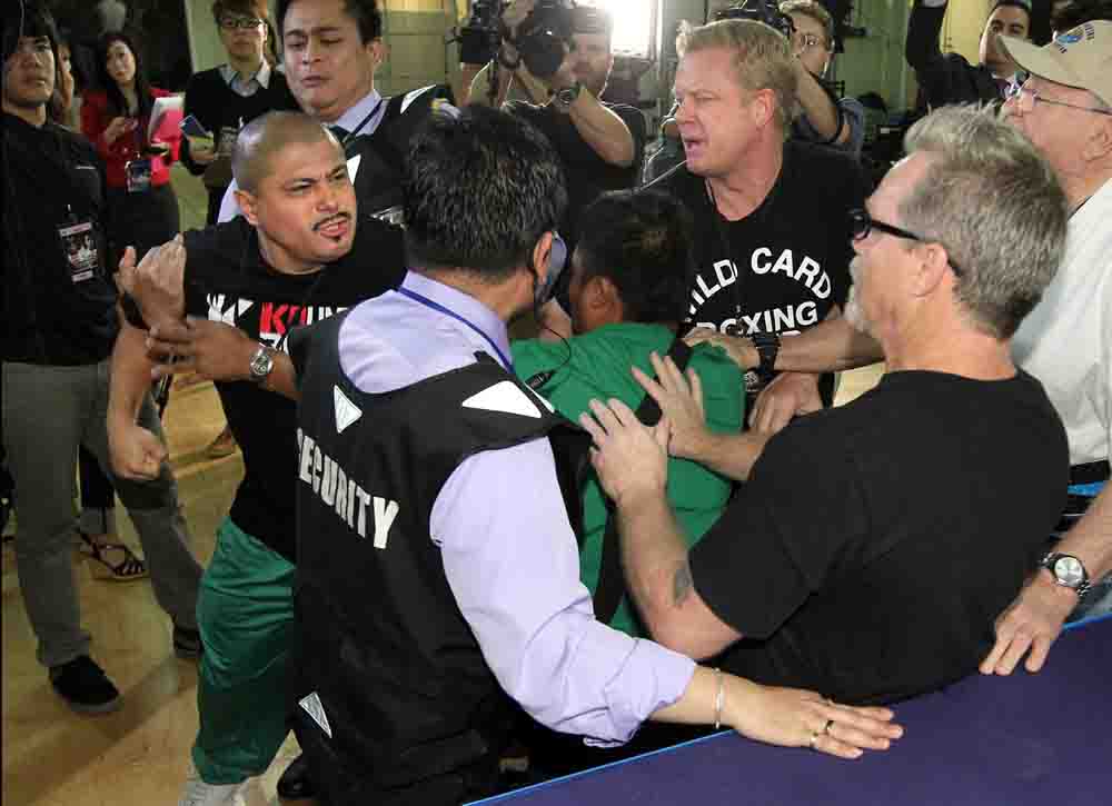 Teams battled and tempers flared at a workout today when the camps of Team Rios and Team Pacquiao crossed paths during training sessions Wednesday at The Venetian Macao Resort . Superstar Manny Pacquiao and former world champion Brandon “Bam Bam” Rios will battle at The Venetian Macao Resort in Macau,China and will be televised live in the US, Saturday, Nov. 23, 9pm ET/6pm PT on HBO Pay-Per-View.