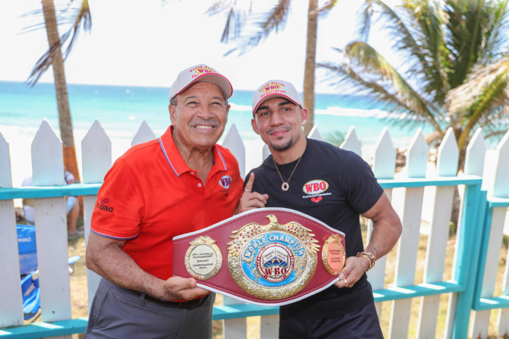 Durante el medio día de ayer en el barrio Islote de Arecibo, la Organización Mundial de Boxeo acompañados de nutrido grupo de leyendas, excampeones, campeones mundiales y prospectos del boxeo, le hicieron entrega al monarca de dos divisiones Teófimo López, su título mundial de la competitiva división de las 140 libras, esto al vencer por decisión unánime al excampeón indiscutible Junior Welter y defensor del cetro OMB Josh Taylor, de Escocia, el pasado mes de junio en Nueva York.