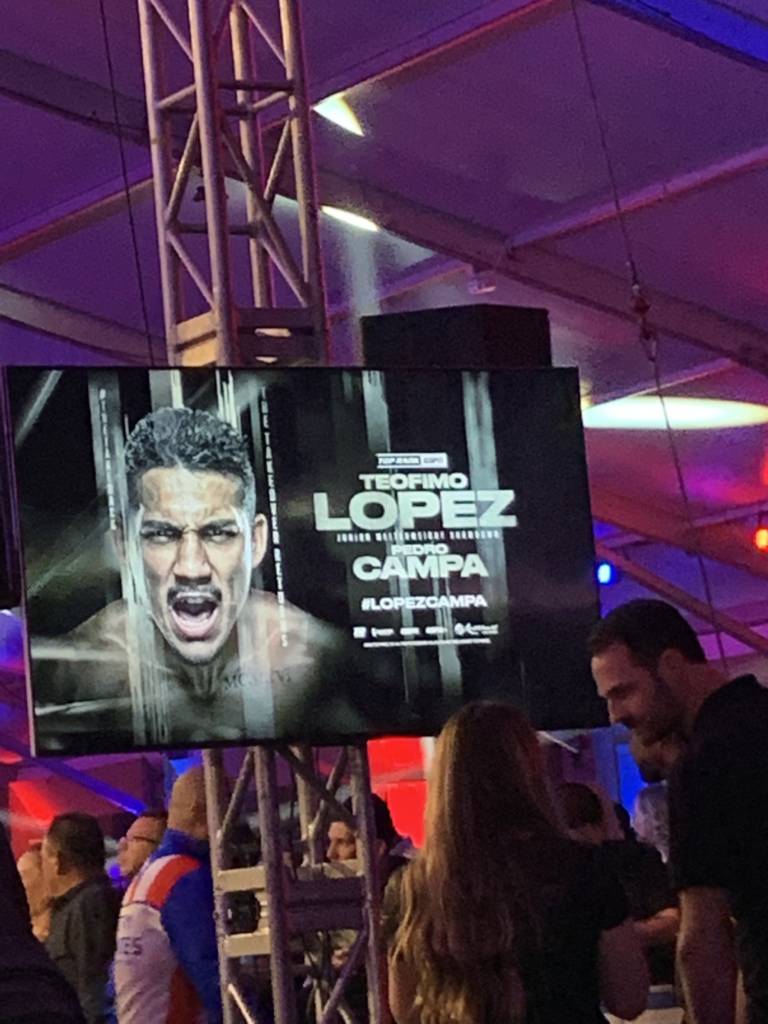 En la cartelera transmitida por el canal ESPN desde el Resort World en Las Vegas, hubo más fanáticos quizá de los que se esperaban en la carpa donde se instalo el ring, ya que antes de las tres de la tarde llego a su capacidad, porque los boletos se agotaron, al igual muchas credenciales de prensa fueron negadas por falta de espacio, y la tarima brava la empezaron a calentar el boricua Xander Zayas contra el paisa Elías Espadas quien fue fulminado en el quinto asalto en un combate donde de inicio a fin fue dominada por el invicto Zayas quien obtuvo su primer cinturón al coronarse Superwelter OBNA, nada mal para empezar a abultar diademas.
