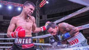 Cuello blows away overmatched Rios to win the vacant WBA interim/temporary title. Cuello was hunting down a fragile Rios from the start and dropped with a straight right late in the first round. Rios was up quickly and there was not enough time remaining in the round for Cuello to finish it. In the second Cuello landed a left hook which sent Rios down on one knee. Again he was up quickly but a left hook to the body put him down and he was counted out. Cuello will now be looking to get a shot at champion Nick Ball. Rios had no right being rated let alone fighting for one of the WBA “world” titles and as usual the WBA indulged in some blatant manipulation to make it seem like an acceptable match(see Observations).