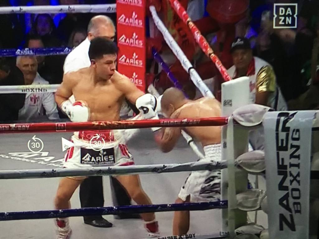 Fortuna wins this all-southpaw clash in the opening round. A right to the head staggered Hernandez early in the fight then Fortuna blitzed him with lefts. Hernandez was turning side-on away from Fortuna’s lefts but Fortuna drove Hernandez down by swinging his left wide and the last punch was a full blooded one to the back of Hernandez’s head. Hernandez got up but was again sent to the canvas under a barrage of rights and the refereed stopped the contest. First outing for the former holder of the secondary WBA lightweight title since losing on points against Joseph Diaz for the interim WBC belt in July. Tenth inside the distance defeat for Venezuelan Hernandez.