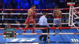 Berlanga gets the unanimous decision over Rolls but shows he still has a lot to learn. Not much action in the first round as Rolls boxed on the retreat firing the occasional jab and Berlanga stalked him only letting a couple of rights go just before the bell with those few jabs enough to give Rolls the round. The second was more of the same with Rolls super cautious and Berlanga unable to cut the ring off and not throwing much. The crowd were expecting the usual fireworks from Berlanga and were getting restive. The third and fourth were low action rounds. Berlanga used his jab and scored with a couple of body shots and a right counter but Rolls was in permanent reverse gear looking to steal rounds with an occasional punch. The fifth was a frustrating round for Berlanga. He just followed Rolls around the ring with Rolls snapping out jabs and then trying Berlanga up inside and for me Rolls was 3-2 up in rounds. Berlanga just did enough with his jab and some hooks to take the sixth but there was no fire in the fight. The seventh was a good round for Rolls. He was consistently spearing Berlanga with jabs and then following in with straight rights with Berlanga hardly landing a punch. Berlanga briefly tried switching to southpaw to no effect. Berlanga took the eighth but it was close. Rolls was still sticking out his jab and firing rights but Berlanga was taking an extra step forward enabling him to score with hooks and he connected with a right to the head late in the round. Berlanga chased Rolls down hard in the ninth and landed well to the body to just have the edge and then produced a stronger finish in the tenth. Scores 97-93 twice and 96-94 for Berlanga. I thought the 96-94 was about right but would not have argued if it had been scored a draw. Berlanga gets his third consecutive points victory and wins the WBO NABO belt but it was an uninspired performance. The blood and thunder of his 16 consecutive first round wins is what people still expect. It is good for his development to go ten rounds with a tricky opponent but he has to be careful not to lose the raging fire he had as this fight showed he is not a great tactical fighter and he failed to put Rolls under enough pressure. It was a fight based on “negative” tactics from Rolls but he was there to win and for me he nearly succeeded.