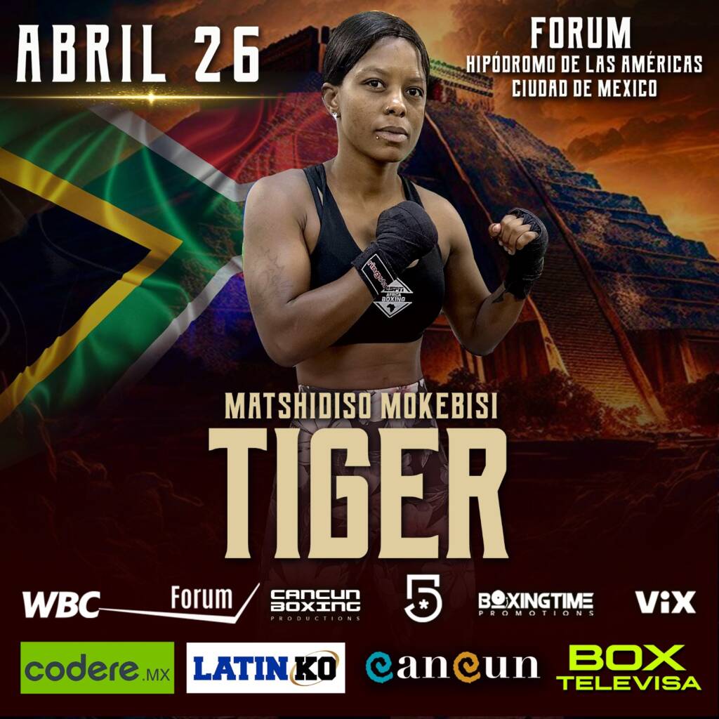 Sin problemas de ninguna índole para el enfrentamiento más importante de su carrera, la sudafricana Matsidisho ‘The Tiger’ Mokebisi ya está en México para enfrentar este viernes a la histórica Mariana ‘La Barby’ Juárez y de ninguna manera contempla una derrota por lo que se visualiza con la mano en todo lo alto este viernes.