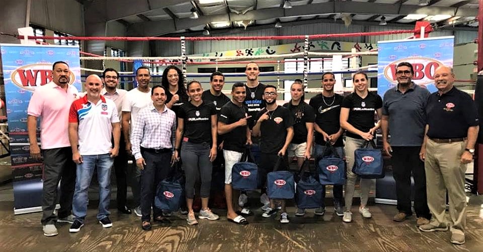 After bringing joy to the children of the center Sor Isolina Ferré in activity held last week in Ponce, the World Boxing Organization (WBO) donated today, sports equipment for members of the National Amateur Boxing Team of Puerto Rico, who will travel to Barranquilla, Colombia towards the Central American and Caribbean Games. The activity was held at the Olympic Village in Salinas.