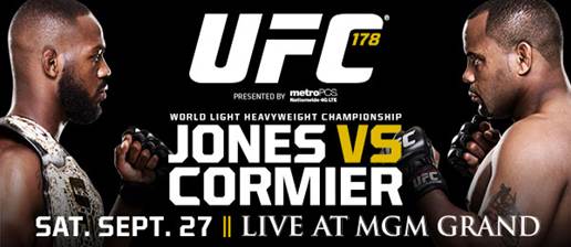 UFC®178: JONES vs. CORMIER will be available live on Pay-Per-View at 10 p.m. ET/7 p.m. PT on UFC.TV, iN DEMAND, DirecTV, DISH Network, Avail-TVN, and in Canada on BellTV, Shaw Communications, Sasktel and Viewer’s Choice Canada for a suggested retail price of $44.99 US/$49.99 CAN for Standard Definition and $54.99 US/$59.99 CAN for High -Definition.