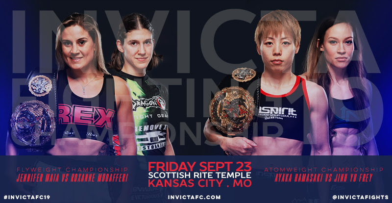 Invicta FC 19 is headlined by newly crowned interim flyweight champion Jennifer Maia (13-4-1) putting her belt on the line against challenger Roxanne “The Happy Warrior” Modafferi (19-12). In the co-main event, Japanese star Ayaka Hamaski (13-1) defends her atomweight championship against surging Jinh Yu Frey (5-1).