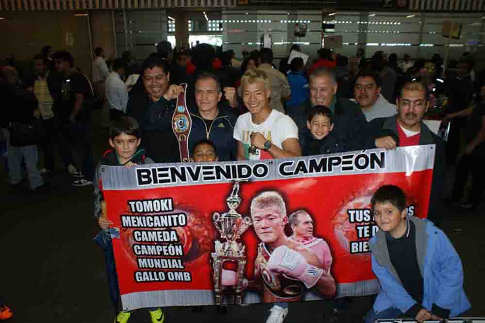 EL japonés Tomoki “Mexicanito” Kameda, campeón mundial gallo de la WBO, fue recibido por una numerosa porra, en el aeropuerto Benito Juárez, de esta capital, la tarde de este lunes.