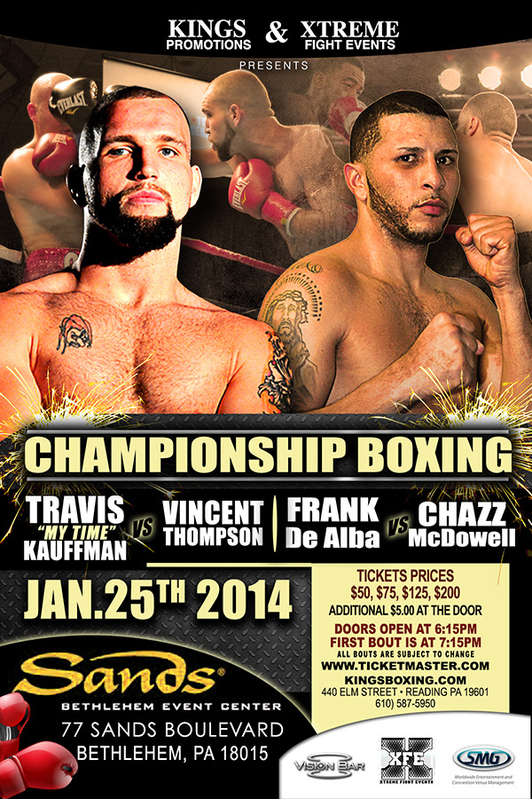 BETHLEHEM, PA – On Saturday night January 25th, King’s Boxing Promotions & XFE presents a great night of boxing at the Sands in Bethlehem, that will feature the WBA number-nine ranked Heavyweight in the world Travis Kauffman taking on once beaten Vincent Thompson in the ten round main event.