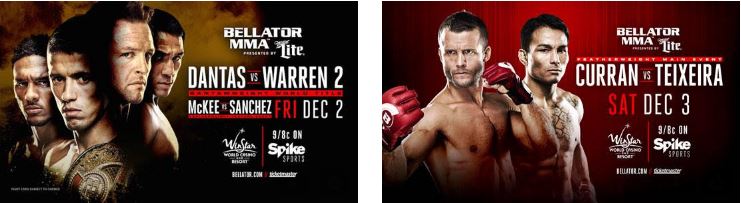 “Bellator 166: Dantas vs. Warren 2” airs live and free on Friday on SPIKE at 9 p.m. ET/8 p.m. CT. “Bellator 167” airs live and free on Saturday on SPIKE at 9 p.m. ET/8 p.m. CT. Preliminary bouts for both events will stream live on Bellator.com and The Bellator Mobile App. Additional bouts will be announced in the coming weeks.